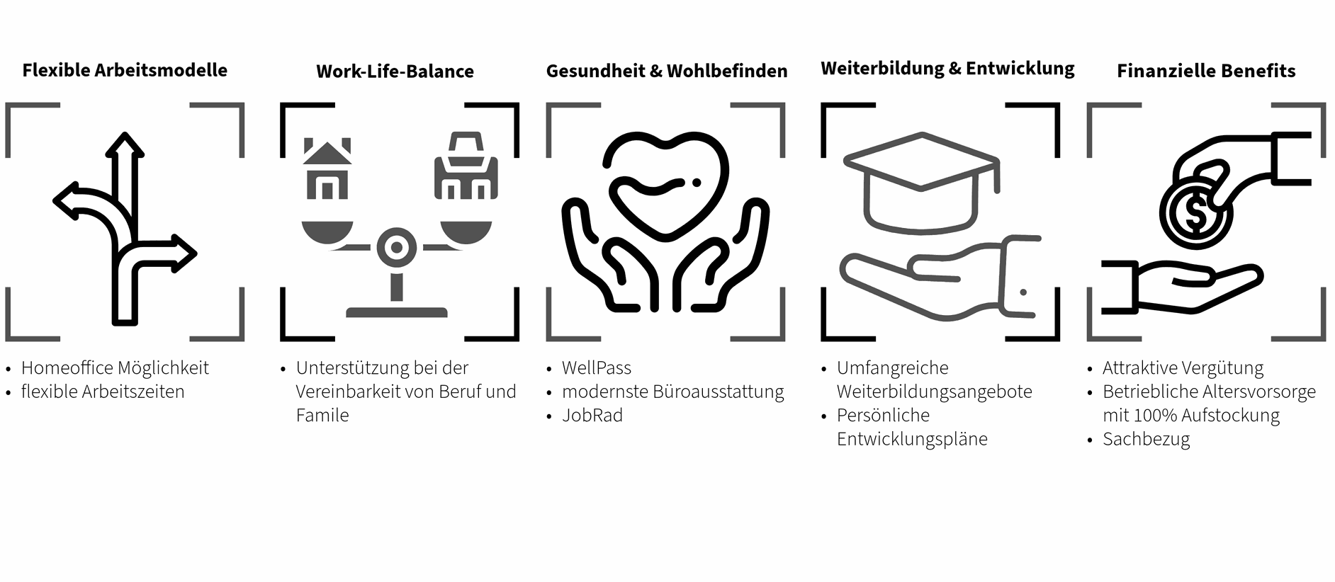 Klare Aufgabenbereiche, transparente Prozesse und individuelle Entwicklungspläne geben dir Orientierung. Regelmäßiges Feedback und Weiterbildungen fördern deine berufliche und persönliche Entwicklung.